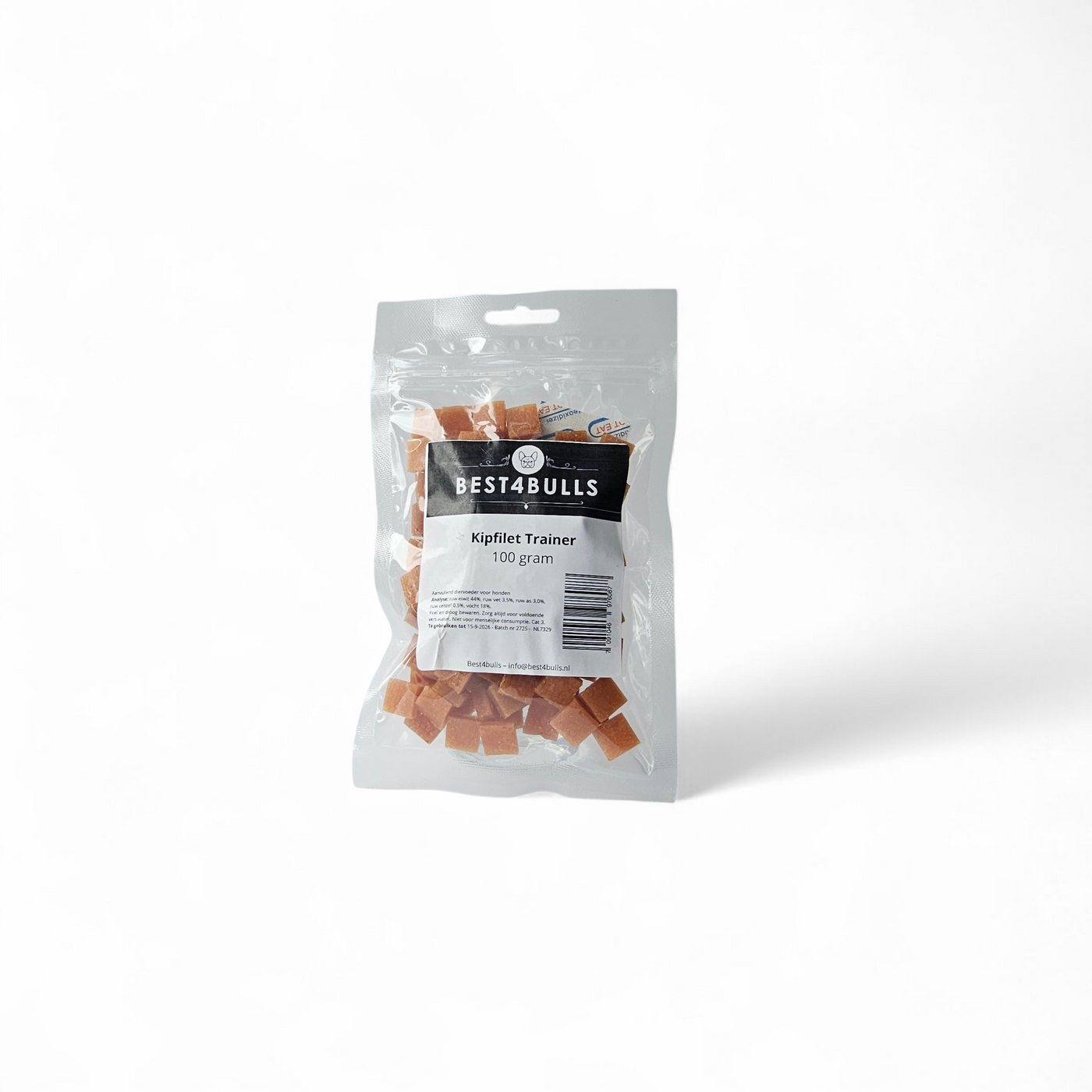 Dried pieces of chicken fillet without chemical additives. 100% pure meat .