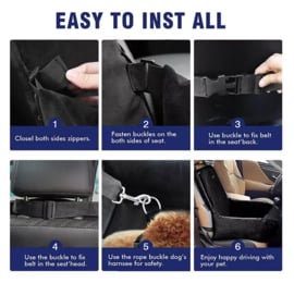 Deze autostoel voor 1 of 2 honden is eenvoudig te monteren op de achterbank: